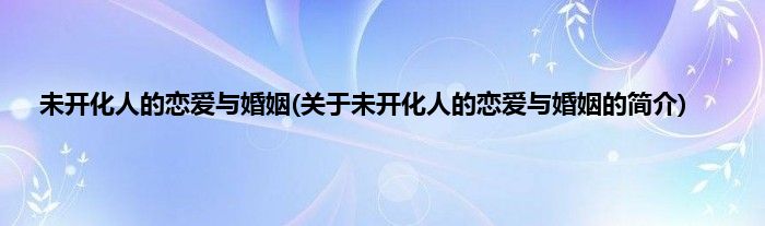 本文关于未开化人的恋爱与婚姻的简介就讲解完毕,希望对大家有所帮助。