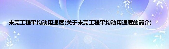 本文关于未完工程平均动用速度的简介就讲解完毕,希望对大家有所帮助。