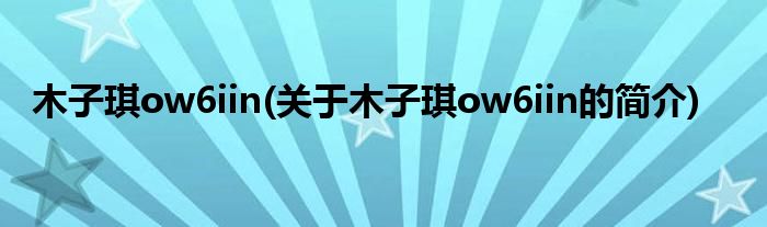 本文关于木子琪ow6iin的简介就讲解完毕,希望对大家有所帮助。
