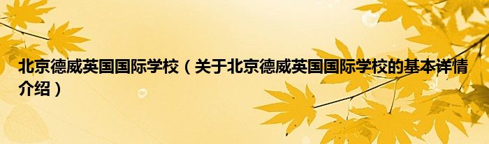 本文关于北京德威英国国际学校的基本详情介绍就讲解完毕,希望对大家有所帮助。