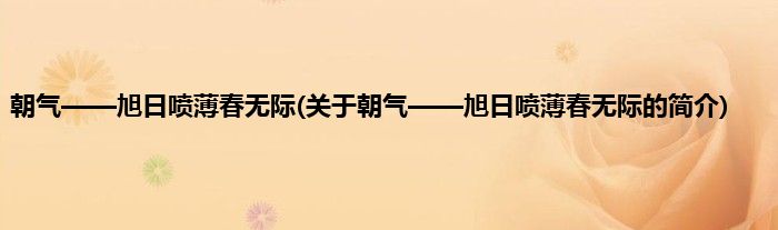 朝气——旭日喷薄春无际(关于朝气——旭日喷薄春无际的简介)