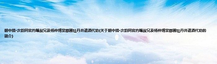 大家好,朝中措·次韵同官约瞻叔兄及杨仲博赏郡圃牡丹并遣酒代劝,关于朝中措·次韵同官约瞻叔兄及杨仲博赏郡圃牡丹并遣酒代劝的简介很多人还不知道,现在让我们一起来看看吧!