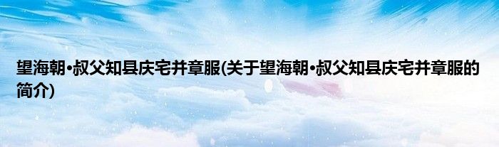 本文关于望海朝·叔父知县庆宅并章服的简介就讲解完毕,希望对大家有所帮助。