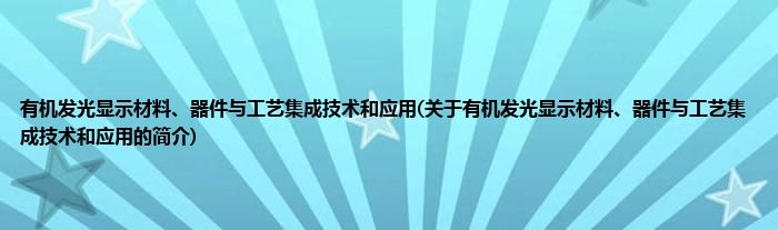 本文关于有机发光显示材料、器件与工艺集成技术和应用的简介就讲解完毕,希望对大家有所帮助。