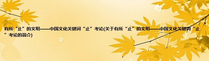 本文关于有所“止”的文明——中国文化关键词“止”考论的简介就讲解完毕,希望对大家有所帮助。