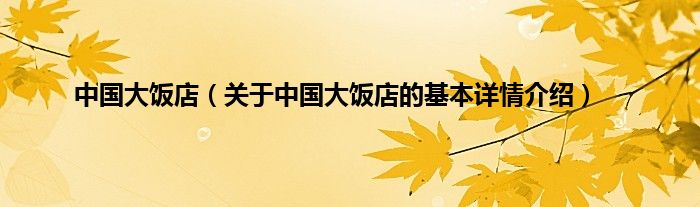 本文关于中国大饭店的基本详情介绍就讲解完毕,希望对大家有所帮助。