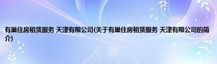 有巢住房租赁服务 天津有限公司(关于有巢住房租赁服务 天津有限公司的简介)