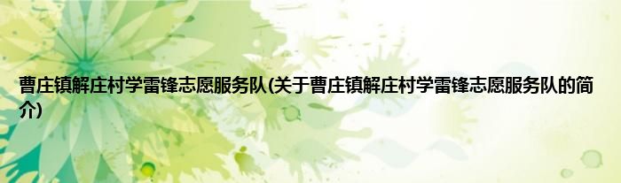 本文关于曹庄镇解庄村学雷锋志愿服务队的简介就讲解完毕,希望对大家有所帮助。