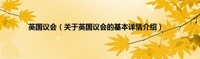本文关于英国议会的基本详情介绍就讲解完毕,希望对大家有所帮助。