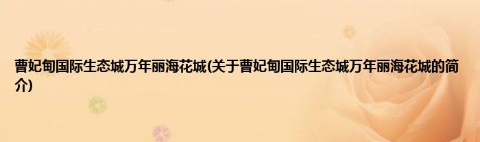 本文关于曹妃甸国际生态城万年丽海花城的简介就讲解完毕,希望对大家有所帮助。