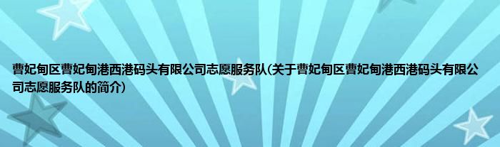 大家好,曹妃甸区曹妃甸港西港码头有限公司志愿服务队,关于曹妃甸区曹妃甸港西港码头有限公司志愿服务队的简介很多人还不知道,现在让我们一起来看看吧!