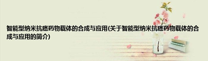 本文关于智能型纳米抗癌药物载体的合成与应用的简介就讲解完毕,希望对大家有所帮助。