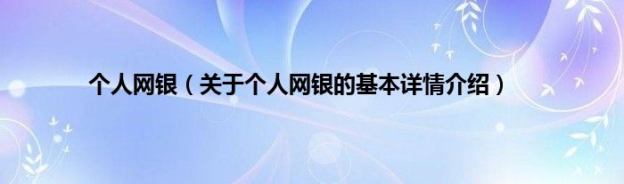 本文关于个人网银的基本详情介绍就讲解完毕,希望对大家有所帮助。