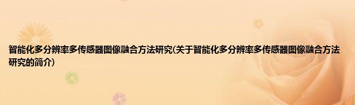 智能化多分辨率多传感器图像融合方法研究(关于智能化多分辨率多传感器图像融合方法研究的简介)