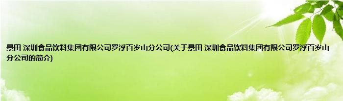 景田 深圳食品饮料集团有限公司罗浮百岁山分公司(关于景田 深圳食品饮料集团有限公司罗浮百岁山分公司的简介)