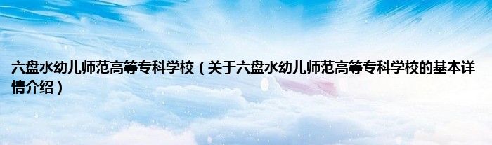 本文关于六盘水幼儿师范高等专科学校的基本详情介绍就讲解完毕,希望对大家有所帮助。