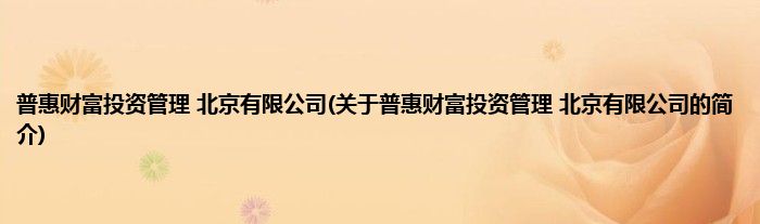 本文关于普惠财富投资管理 北京有限公司的简介就讲解完毕,希望对大家有所帮助。