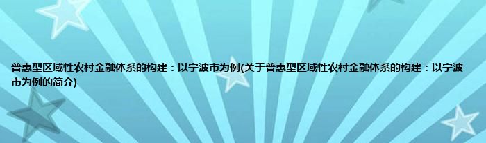 大家好,普惠型区域性农村金融体系的构建:以宁波市为例,关于普惠型区域性农村金融体系的构建:以宁波市为例的简介很多人还不知道,现在让我们一起来看看吧!