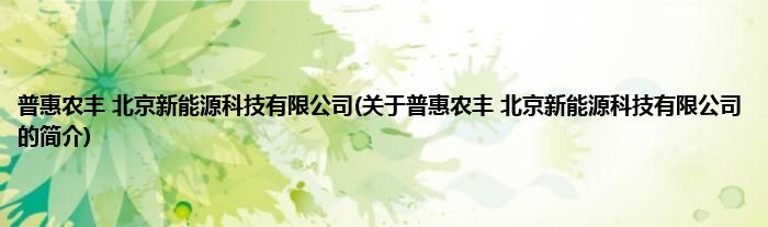 本文关于普惠农丰 北京新能源科技有限公司的简介就讲解完毕,希望对大家有所帮助。