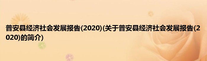 大家好,普安县经济社会发展报告,2020,关于普安县经济社会发展报告,2020的简介很多人还不知道,现在让我们一起来看看吧!