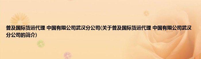大家好,普及国际货运代理 中国有限公司武汉分公司,关于普及国际货运代理 中国有限公司武汉分公司的简介很多人还不知道,现在让我们一起来看看吧!