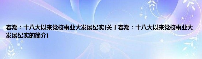 大家好,春潮:十八大以来党校事业大发展纪实,关于春潮:十八大以来党校事业大发展纪实的简介很多人还不知道,现在让我们一起来看看吧!