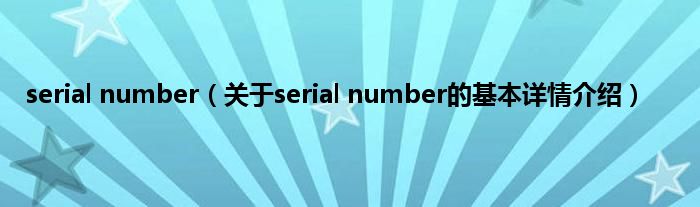 本文关于serial number的基本详情介绍就讲解完毕,希望对大家有所帮助。