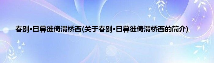 本文关于春别·日暮徙倚渭桥西的简介就讲解完毕,希望对大家有所帮助。
