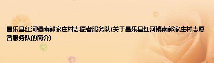 大家好,昌乐县红河镇南郭家庄村志愿者服务队,关于昌乐县红河镇南郭家庄村志愿者服务队的简介很多人还不知道,现在让我们一起来看看吧!