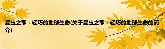 本文关于昆虫之家:轻巧的地球生命的简介就讲解完毕,希望对大家有所帮助。