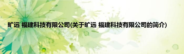 本文关于旷远 福建科技有限公司的简介就讲解完毕,希望对大家有所帮助。