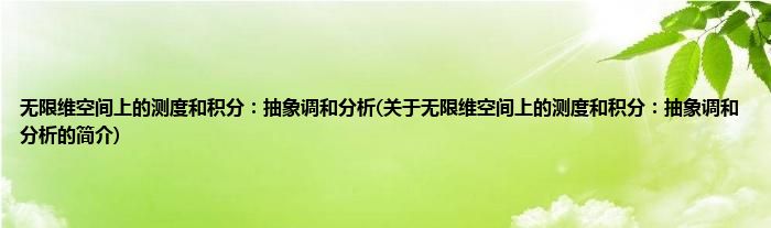 大家好,无限维空间上的测度和积分:抽象调和分析,关于无限维空间上的测度和积分:抽象调和分析的简介很多人还不知道,现在让我们一起来看看吧!