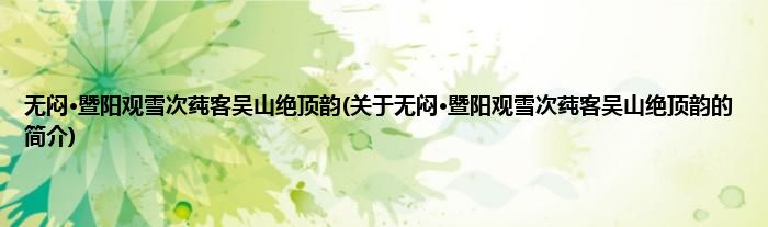 本文关于无闷·暨阳观雪次莼客吴山绝顶韵的简介就讲解完毕,希望对大家有所帮助。