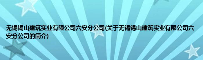 本文关于无锡锡山建筑实业有限公司六安分公司的简介就讲解完毕,希望对大家有所帮助。