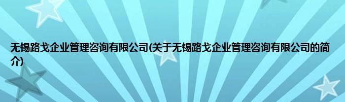 本文关于无锡路戈企业管理咨询有限公司的简介就讲解完毕,希望对大家有所帮助。