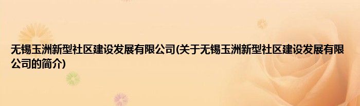 本文关于无锡玉洲新型社区建设发展有限公司的简介就讲解完毕,希望对大家有所帮助。
