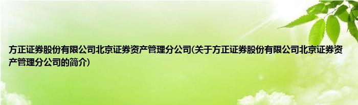 本文关于方正证券股份有限公司北京证券资产管理分公司的简介就讲解完毕,希望对大家有所帮助。