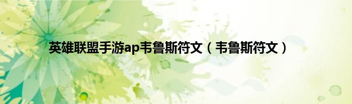 大家好,精选小编来为大家解答以上问题。英雄联盟手游ap韦鲁斯符文,韦鲁斯符文很多人还不知道,现在让我们一起来看看吧!
