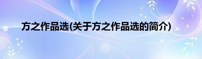 本文关于方之作品选的简介就讲解完毕,希望对大家有所帮助。