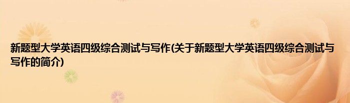 大家好,新题型大学英语四级综合测试与写作,关于新题型大学英语四级综合测试与写作的简介很多人还不知道,现在让我们一起来看看吧!