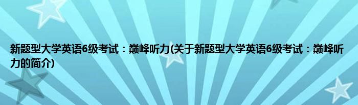 大家好,新题型大学英语6级考试:巅峰听力,关于新题型大学英语6级考试:巅峰听力的简介很多人还不知道,现在让我们一起来看看吧!