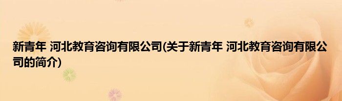 本文关于新青年 河北教育咨询有限公司的简介就讲解完毕,希望对大家有所帮助。
