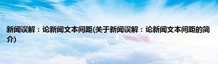 大家好,新闻误解:论新闻文本间距,关于新闻误解:论新闻文本间距的简介很多人还不知道,现在让我们一起来看看吧!