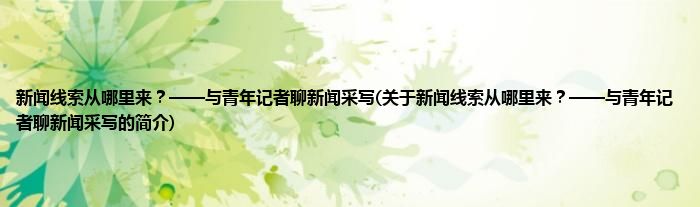 新闻线索从哪里来?——与青年记者聊新闻采写(关于新闻线索从哪里来?——与青年记者...