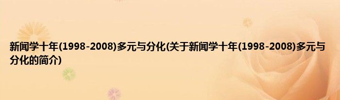 本文关于新闻学十年(1998-2008)多元与分化的简介就讲解完毕,希望对大家有所帮助。