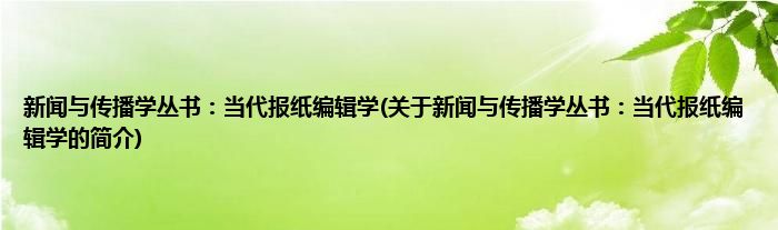 大家好,新闻与传播学丛书:当代报纸编辑学,关于新闻与传播学丛书:当代报纸编辑学的简介很多人还不知道,现在让我们一起来看看吧!