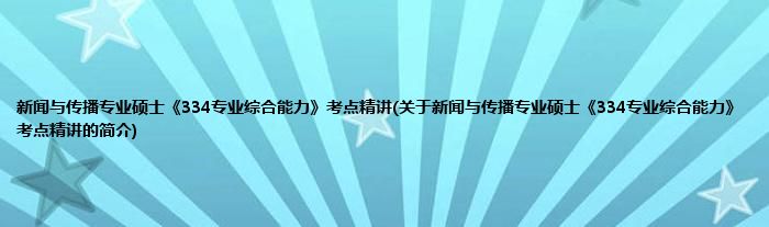 新闻与传播专业硕士《334专业综合能力》考点精讲(关于新闻与传播专业硕士《334...