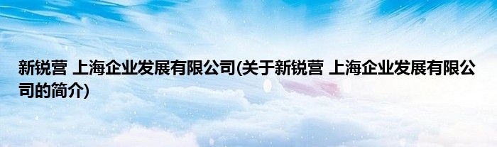 大家好,新锐营 上海企业发展有限公司,关于新锐营 上海企业发展有限公司的简介很多人还不知道,现在让我们一起来看看吧!