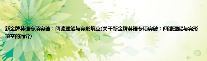 本文关于新金牌英语专项突破:阅读理解与完形填空的简介就讲解完毕,希望对大家有所帮助。