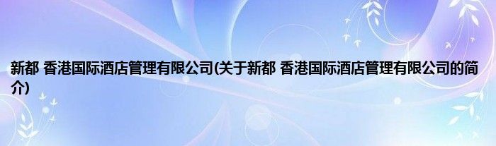 本文关于新都 香港国际酒店管理有限公司的简介就讲解完毕,希望对大家有所帮助。